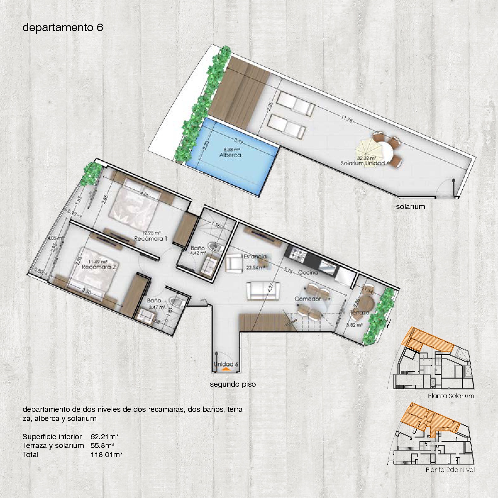 Conformado por 8 exclusivos departamentos distribuidos. Su diseño arquitectónico respeta la naturaleza, creando espacios responsables con el medio ambiente y logrando reducir el impacto en nuestro entorno.